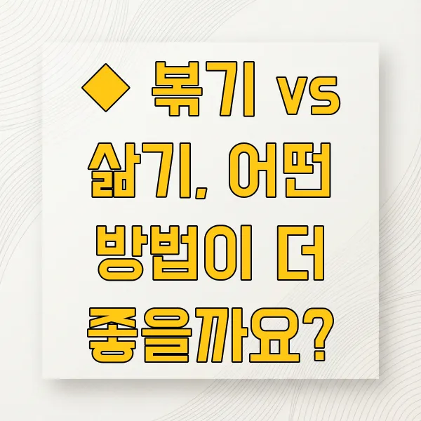 ◆ 볶기 vs 삶기, 어떤 방법이 더 좋을까요?