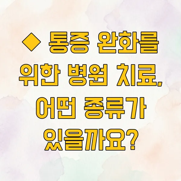 ◆ 통증 완화를 위한 병원 치료, 어떤 종류가 있을까요?