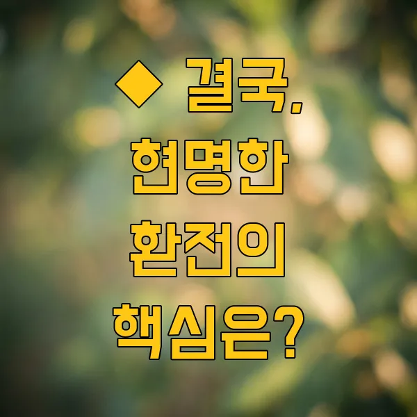 결론적으로, 환율 우대 혜택을 꼼꼼히 챙기는 것과 더불어 환전 시점을 잘 잡는 것이 해외 금융 생활을 더욱 효율적으로 만드는 가장 강력한 무기라고 할 수 있어요. 오늘 제가 드린 이야기들이 여러분의 현명한 환전 생활에 조금이나마 도움이 되었으면 좋겠습니다!